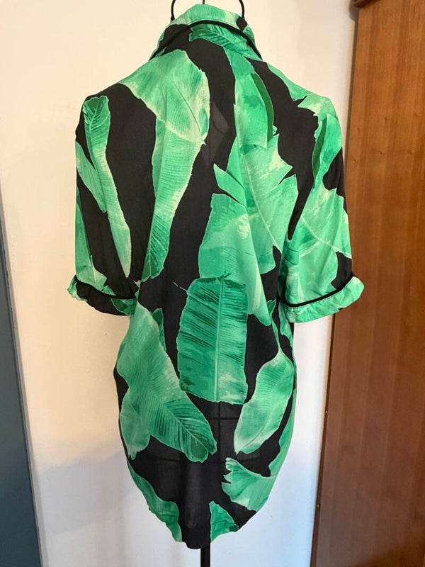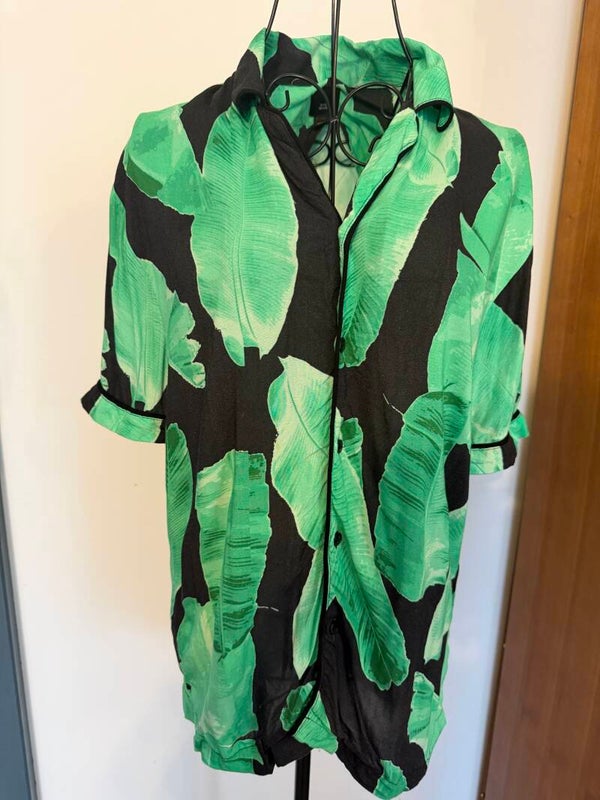Chemise vintage taille S River Island (chemise d’origine Anglaise) Noire à motif feuilles vertes. Marque britannique de renom prix neuf 50€. Grade A